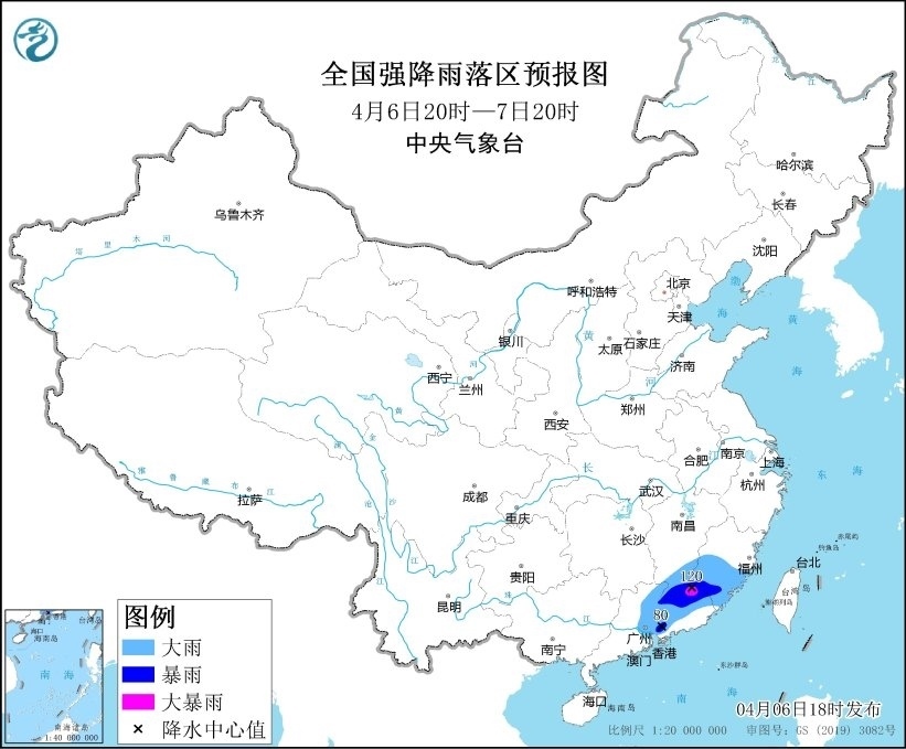 預(yù)計(jì),4月6日20時至7日20時,江西南部、福建中南部、廣東中東部等地的部分地區(qū)有大到暴雨,其中,江西南部、福建南部、廣東東北部等地局地有大暴雨(100~120毫米)。上述部分地區(qū)伴有短時強(qiáng)降水(最大小時降雨量20~40毫米,局地可超過50毫米),局地有雷暴大風(fēng)或冰雹等強(qiáng)對流天氣。
