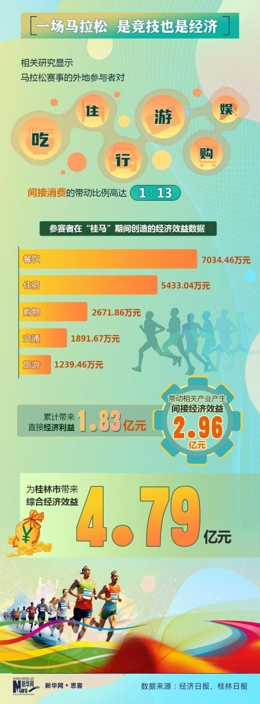 3月17日落幕的桂林馬拉松,根據(jù)測算,因賽事帶來的直接經(jīng)濟(jì)效益1.83億元,并帶動相關(guān)產(chǎn)業(yè)產(chǎn)生間接經(jīng)濟(jì)效益2.96億元。今年的無錫馬拉松參賽者在錫馬期間創(chuàng)造餐飲、住宿、交通、旅游等經(jīng)濟(jì)效益2.82億元——這一數(shù)字,較去年提升了45.5%。2024浦口馬拉松期間,全區(qū)接待游客48.9萬人次,實現(xiàn)旅游消費3.6億元。