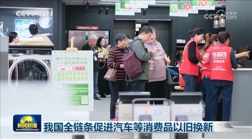 央視網(wǎng)消息(新聞聯(lián)播):記者從商務(wù)部了解到,近日,14部門(mén)聯(lián)合發(fā)布《推動(dòng)消費(fèi)品以舊換新行動(dòng)方案》,部署組織在全國(guó)范圍內(nèi)開(kāi)展汽車(chē)、家電、家裝廚衛(wèi)等消費(fèi)品以舊換新。