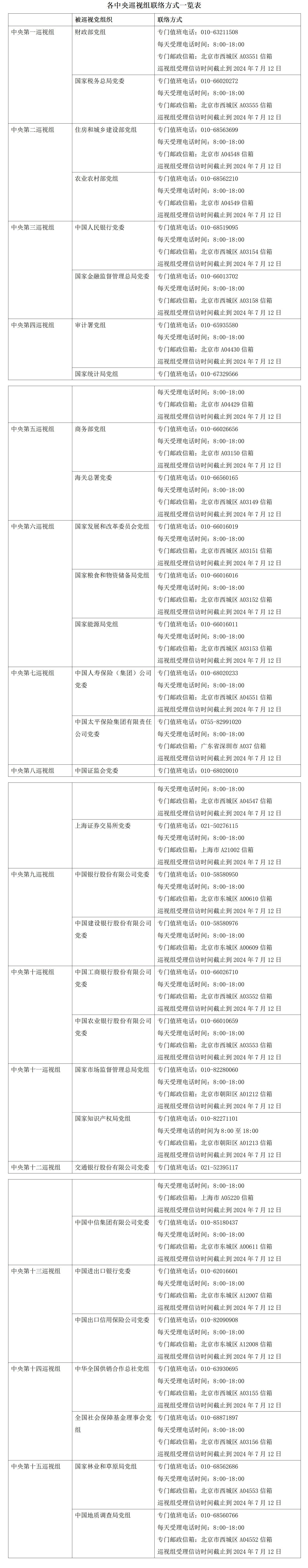 根據(jù)黨中央關(guān)于巡視工作統(tǒng)一部署,二十屆中央第三輪巡視的15個巡視組陸續(xù)開始進(jìn)駐被巡視單位。目前,中央巡視組已進(jìn)駐31家單位并公布了聯(lián)系方式。據(jù)了解,中央巡視組將在被巡視黨組織工作3個月左右。