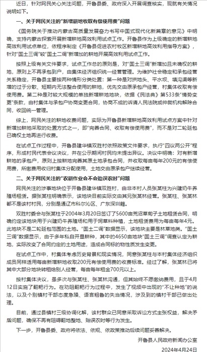 ·新增耕地收取有償使用費(fèi)?農(nóng)耕作業(yè)會(huì)不會(huì)貽誤農(nóng)時(shí)??jī)?nèi)蒙古開(kāi)魯縣回應(yīng)。