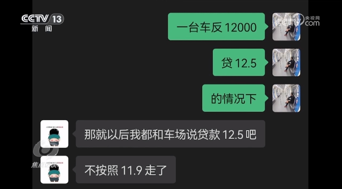 所謂物流公司內(nèi)部的一段聊天記錄顯示,一位司機購買的一臺車,物流公司的人和貸款公司一起運作,把原本應(yīng)該是11.9萬元的貸款總額提高到12.5萬元,物流公司人員從中可以獲取12000元的返利。