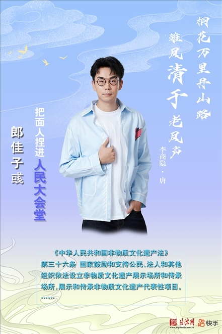 郎佳子彧畢業(yè)于北京大學(xué)藝術(shù)學(xué)院,國(guó)家級(jí)非遺“北京面人郎”第三代傳承人。他自幼受家庭熏陶,3歲隨父親郎志春學(xué)藝,至今已20多年。他嘗試用老手藝做新題材,同時(shí)探索利用短視頻、直播等新媒介展示傳統(tǒng)技藝,讓更多人了解并愛(ài)上面塑。