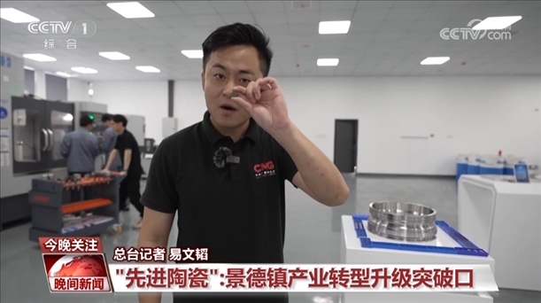 總臺記者 易文韜:在我手中,這一塊兒像巧克力大小的零配件就是航空陶瓷刀具的刀片部分,陶瓷刀片具有優(yōu)秀的耐磨性、耐熱性和化學穩(wěn)定性,可以以更高的切削效率對高溫合金進行切削工作。