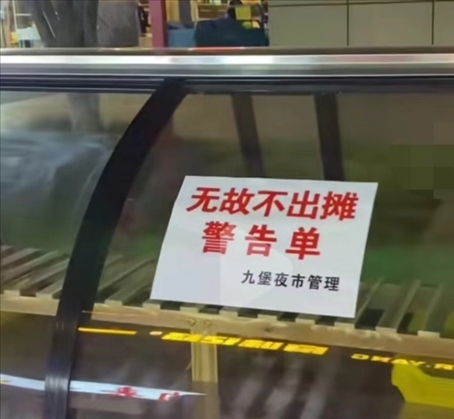 ·杭州一夜市給攤主開無(wú)故不出攤警告單,管理方:不能三天打魚兩天曬網(wǎng)。