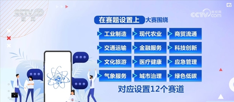 在賽題設(shè)置上,大賽圍繞工業(yè)制造、現(xiàn)代農(nóng)業(yè)、商貿(mào)流通、交通運(yùn)輸、金融服務(wù)、科技創(chuàng)新、文化旅游、醫(yī)療健康、應(yīng)急管理、氣象服務(wù)、城市治理、綠色低碳12個行業(yè)及領(lǐng)域,對應(yīng)設(shè)置12個賽道。