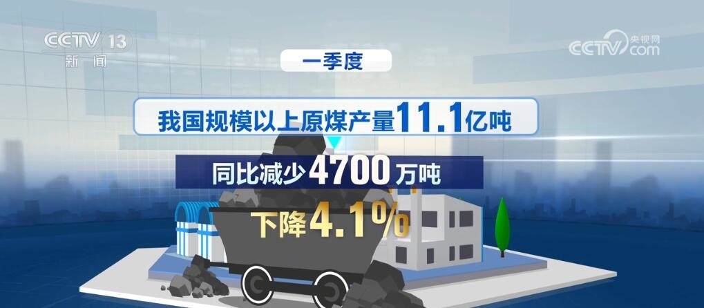 數(shù)據(jù)顯示,3月份,我國規(guī)模以上原煤產(chǎn)量4.0億噸,同比下降4.2%。一季度,我國規(guī)模以上原煤產(chǎn)量11.1億噸,同比減少4700萬噸,下降4.1%。與此同時,可再生能源發(fā)電量穩(wěn)步提升。一季度,全國可再生能源發(fā)電量達6875億千瓦時,約占全部發(fā)電量的30.7%。其中,風(fēng)電光伏發(fā)電量達4253億千瓦時,同比增長25%。