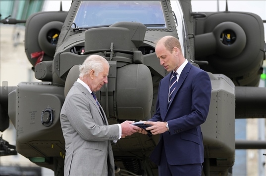 ·患癌后罕見同框!英國國王查爾斯三世向威廉王子移交榮譽性軍職。