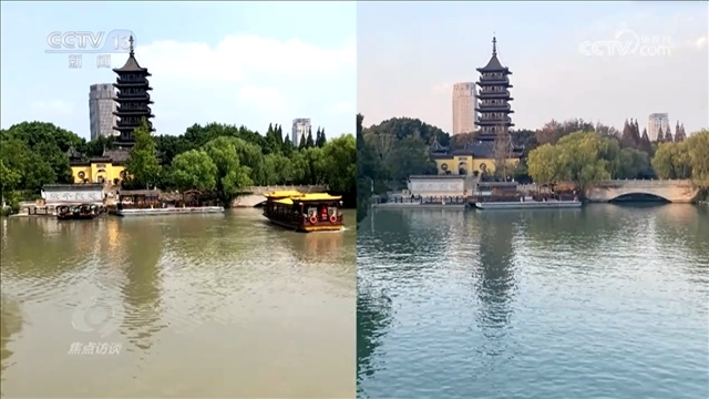 央視網(wǎng)消息(焦點(diǎn)訪談):這里是浙江嘉興的南湖,這兩張南湖的照片分別拍攝于2016年和2021年,同一視角相隔5年,水質(zhì)的變化已經(jīng)清晰可見。今天的南湖水,水草蕩漾,碧波清澈。在過(guò)去7年多的時(shí)間里,南湖水質(zhì)從之前的Ⅴ類,提升至如今的湖庫(kù)Ⅲ類水,這樣的變化是怎么發(fā)生的呢??