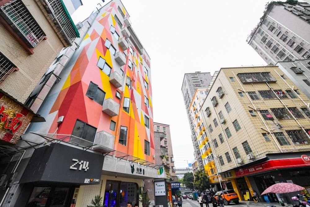 2023年4月2日在深圳市龍華區(qū)元芬村拍攝的改造后的青年公寓外立面(左)。近年來(lái),深圳持續(xù)推進(jìn)城中村住房規(guī)?;焚|(zhì)化改造提升,打造了元芬村等新型宜居人文社區(qū)。新華社記者 毛思倩 攝