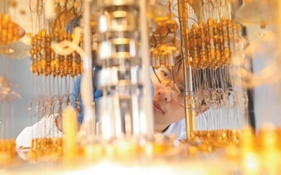 與時俱進全面深化改革 深圳國際量子研究院超導(dǎo)量子計算實驗室,實驗人員正在調(diào)試稀釋制冷機。楊浩翰攝(人民視覺)