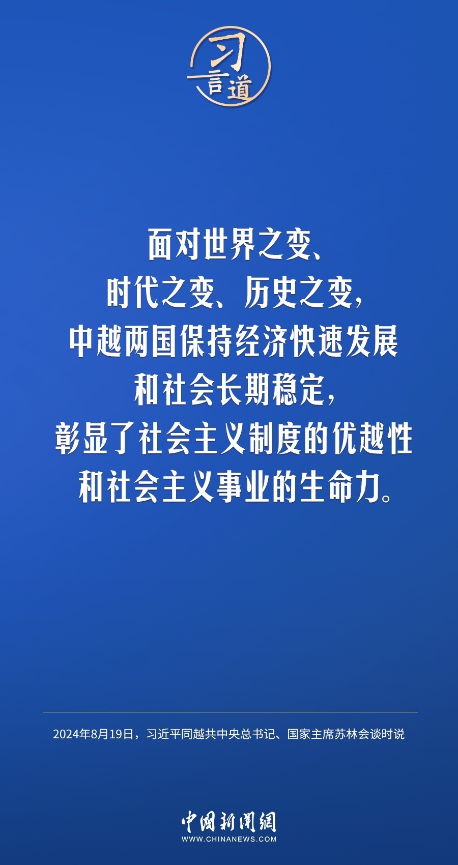 8月19日,中共中央總書記、國家主席習(xí)近平在北京人民大會堂同來華進行國事訪問的越共中央總書記、國家主席蘇林舉行會談。習(xí)近平指出——