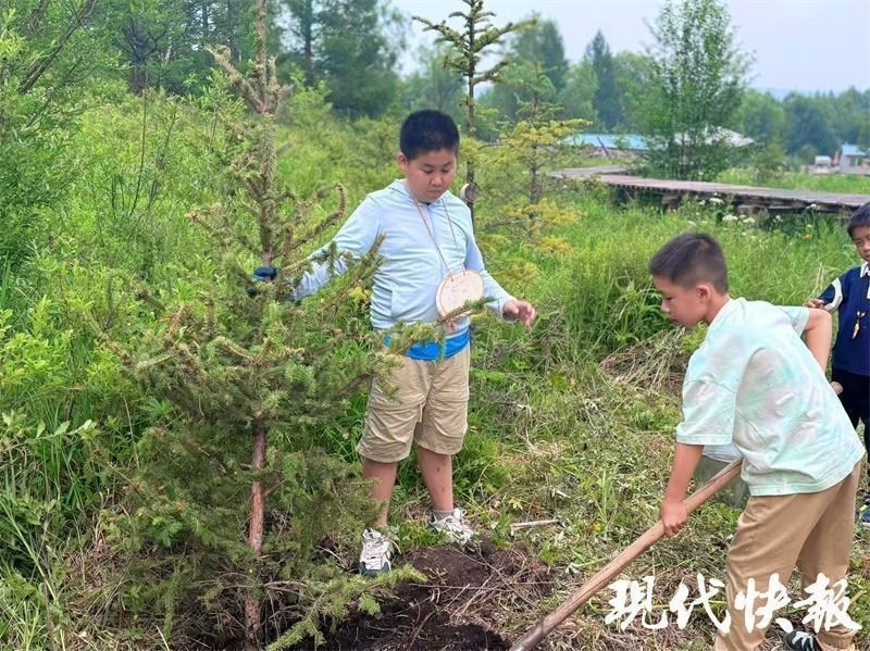 這樣的美麗風(fēng)景讓第一次來到大草原的周云昊很興奮。“我們從當(dāng)?shù)亓私獾?,這是一代又一代人努力的結(jié)果,讓我們也深切感受到生態(tài)保護的重要性。”研學(xué)途中,周云昊和小伙伴們還專門在當(dāng)?shù)亓謭龇N下一棵樹?!跋M芙】甸L大,成為守護綠色草原的小衛(wèi)士?!?/p>