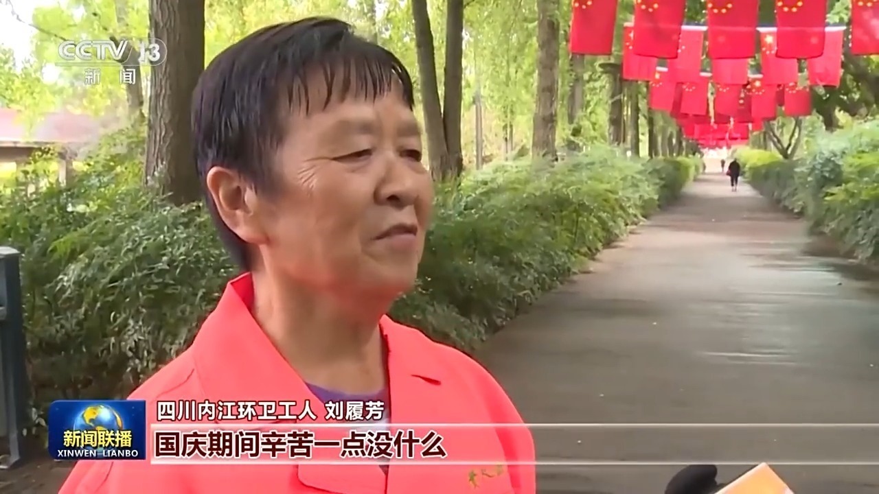 四川內(nèi)江環(huán)衛(wèi)工人 劉履芳:國慶期間辛苦一點沒什么,希望市民過一個開心、整潔的國慶假期。