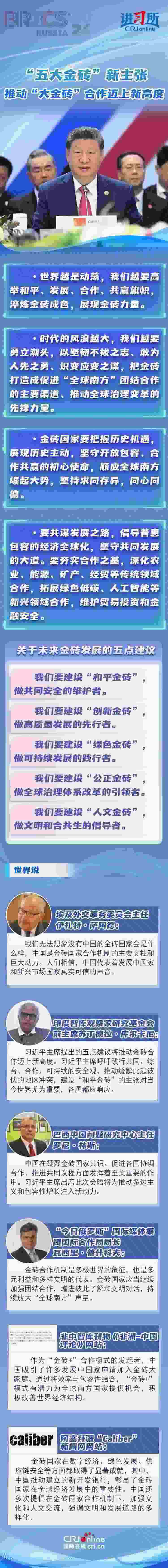 多國人士及媒體盛贊習(xí)近平主席的“五大金磚”建議將推動金磚合作邁上新高度,稱贊中國在凝聚金磚國家共識、促進(jìn)各國協(xié)調(diào)合作、推進(jìn)共同議程方面發(fā)揮著至關(guān)重要的作用,代表著發(fā)展中國家和新興市場國家真實(shí)可信的聲音。