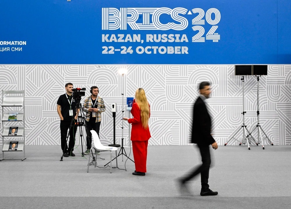 喀山會(huì)展中心會(huì)場外,數(shù)十面各國國旗迎風(fēng)招展。緊鄰會(huì)展中心的喀山國際機(jī)場,一架架專機(jī)在這里降落。多位國家領(lǐng)導(dǎo)人和高級(jí)別官員、國際組織負(fù)責(zé)人從世界各地奔赴古城。