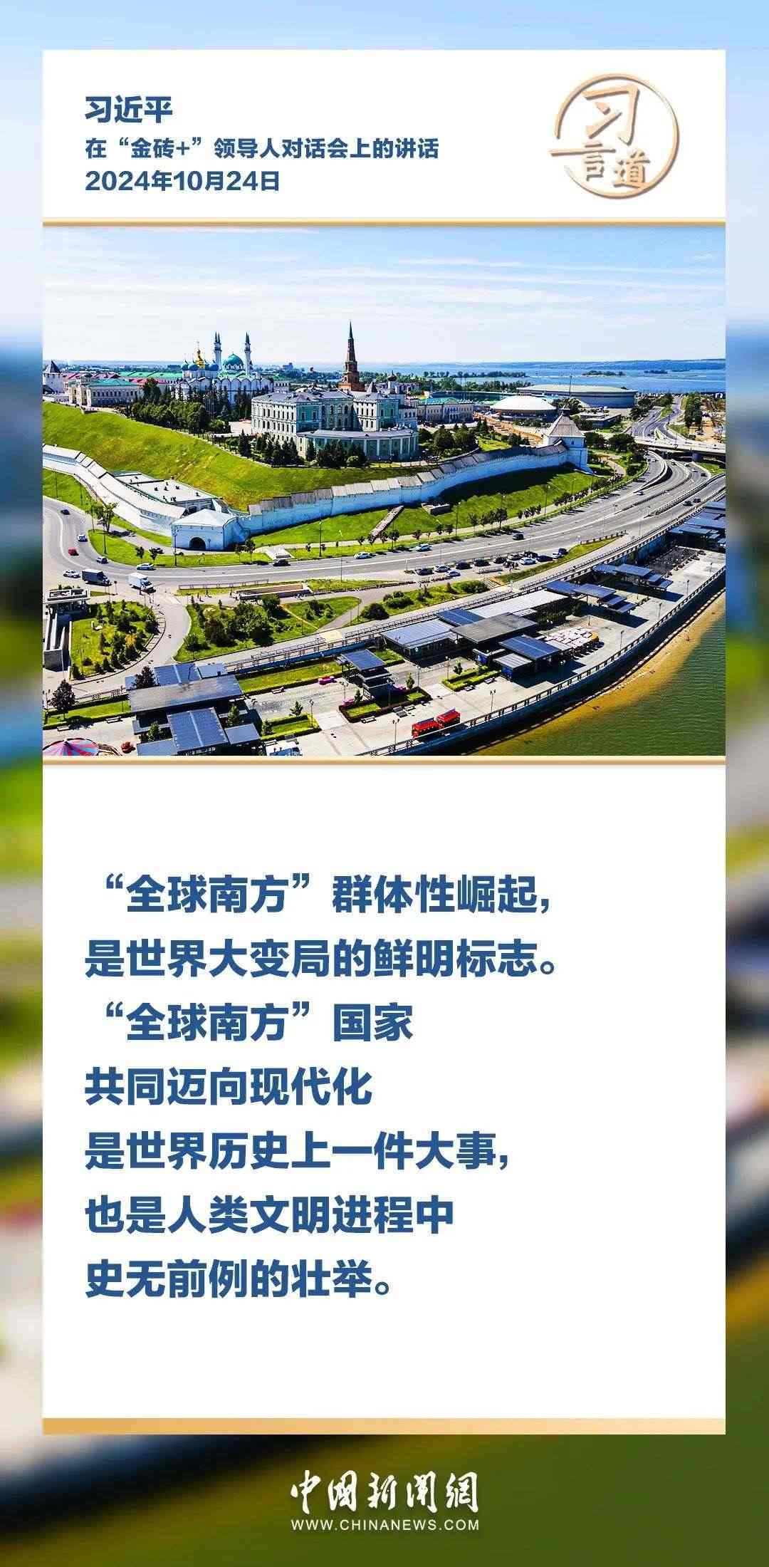 當(dāng)?shù)貢r(shí)間10月24日,國家主席習(xí)近平在喀山會展中心出席“金磚+”領(lǐng)導(dǎo)人對話會并發(fā)表重要講話。習(xí)近平指出——