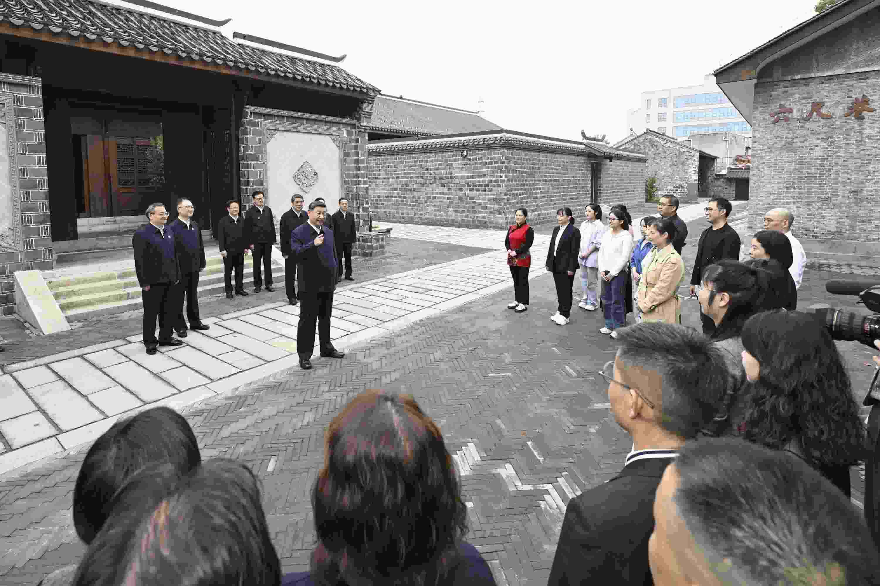 △2024年10月17日,習近平總書記在安徽省安慶桐城市六尺巷考察時,同當地居民和游客親切交流。