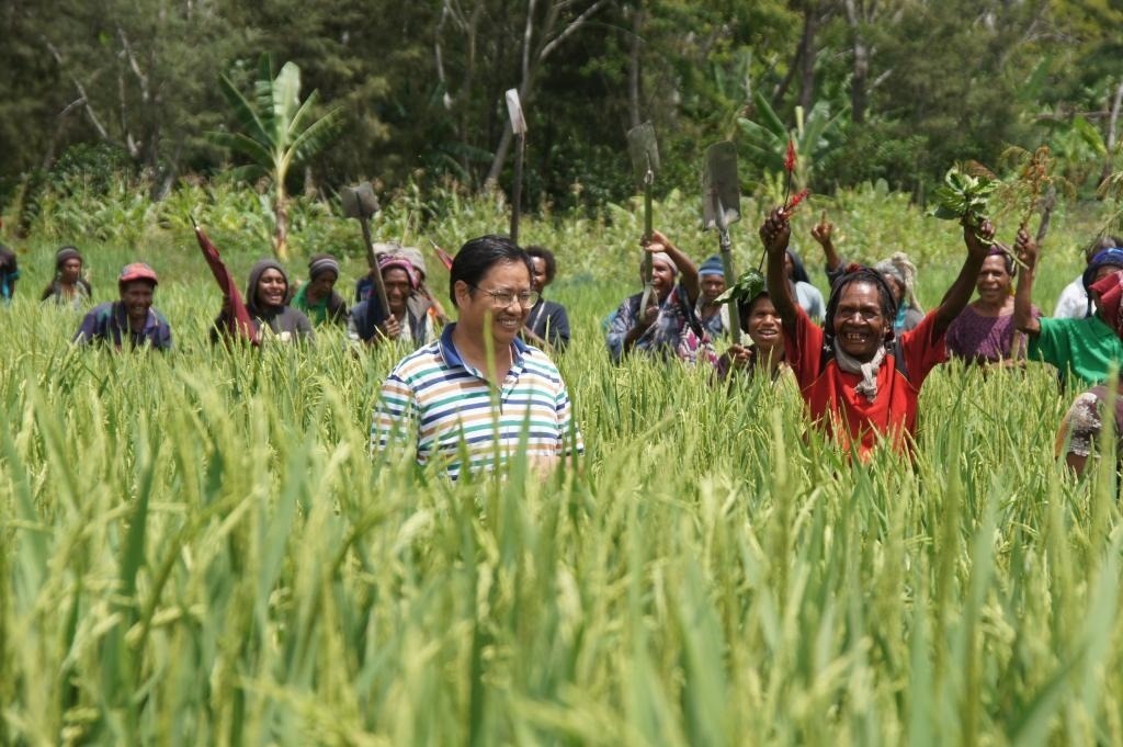 △ 2019年12月17日,首次參與中國援巴新旱稻項目的巴布亞新幾內(nèi)亞農(nóng)戶,看到自己種植的旱稻長勢喜人。