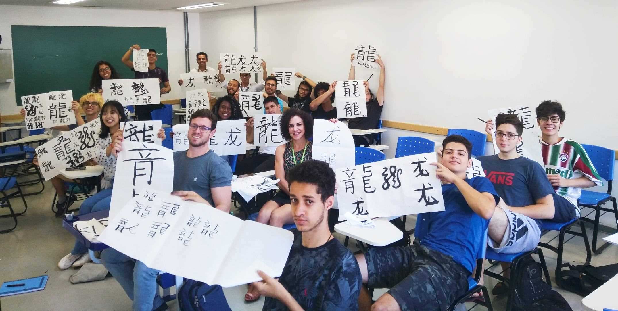巴西學(xué)生在孔子學(xué)院體驗中國文化。