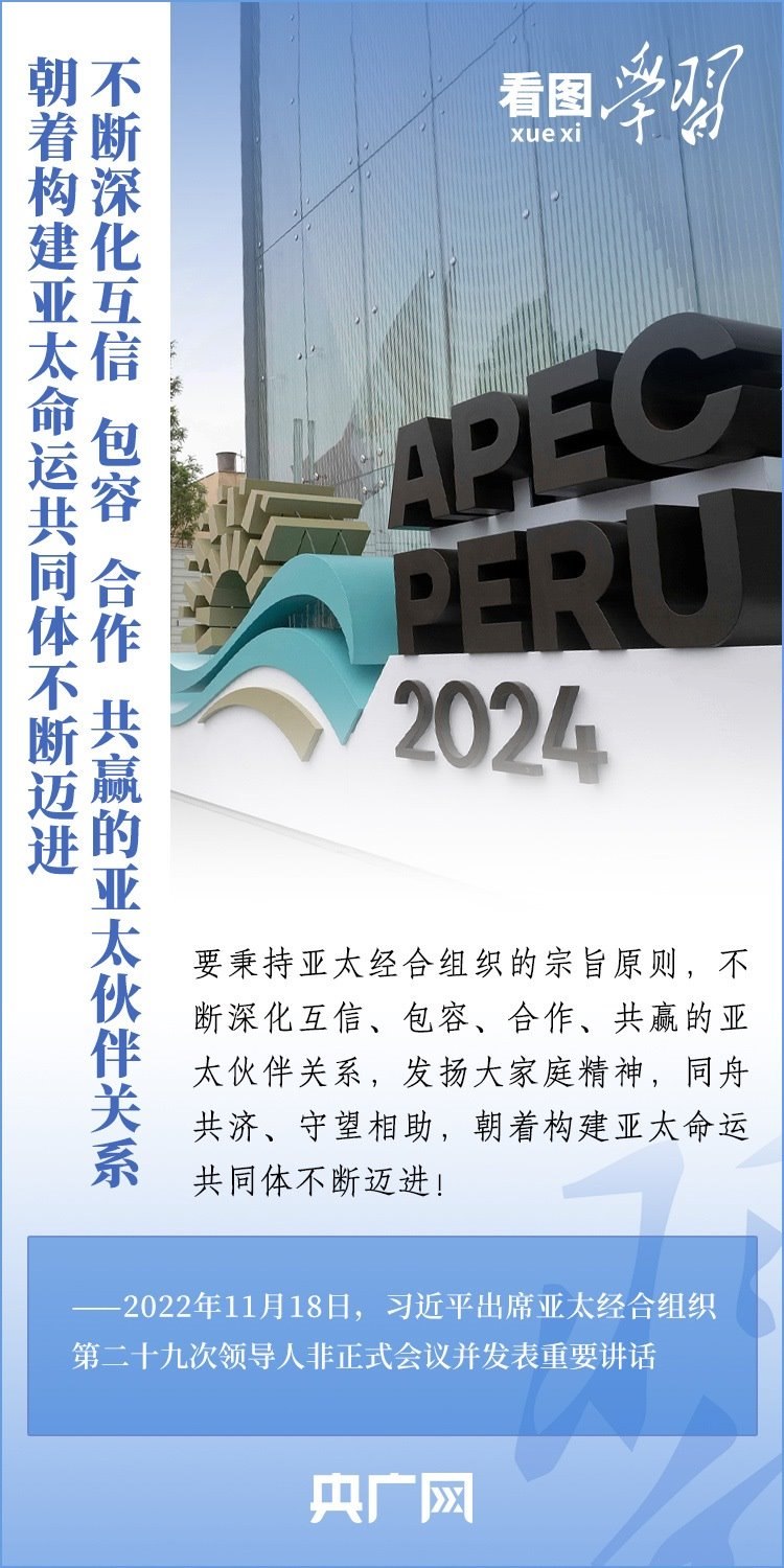 亞太經(jīng)合組織(APEC)是亞太地區(qū)層級最高、領(lǐng)域最廣、最具影響力的經(jīng)濟(jì)合作機(jī)制。11月13日至17日,習(xí)近平主席赴利馬出席亞太經(jīng)合組織第三十一次領(lǐng)導(dǎo)人非正式會議并對秘魯進(jìn)行國事訪問。從“亞太夢想”到“APEC方式”,從“亞太伙伴關(guān)系”到“亞太命運共同體”……2013年以來,習(xí)近平主席出席或主持歷次APEC領(lǐng)導(dǎo)人非正式會議,就全球及地區(qū)形勢、亞太區(qū)域合作、APEC未來發(fā)展等一系列重大問題闡釋中國主張,推動不斷深化互信、包容、合作、共贏的亞太伙伴關(guān)系,建設(shè)開放、活力、強韌、和平的亞太共同體。一起來學(xué)習(xí)!