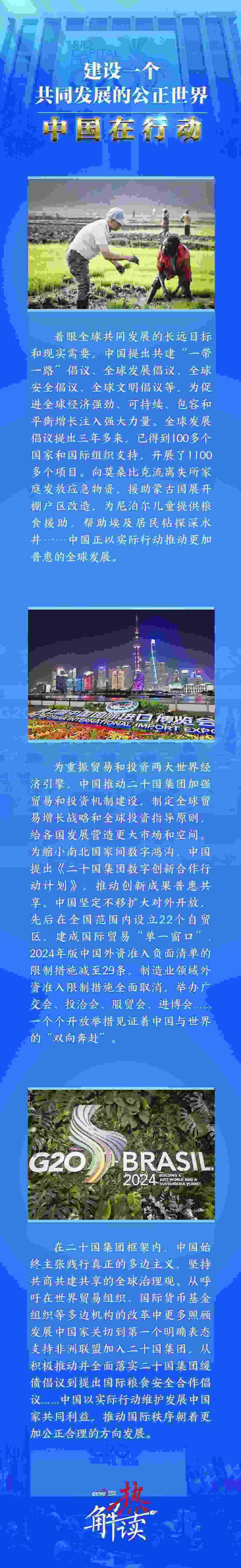 時(shí)隔八年,在遙遠(yuǎn)的里約熱內(nèi)盧,2024年二十國集團(tuán)領(lǐng)導(dǎo)人峰會把“構(gòu)建公正的世界和可持續(xù)的星球”作為主題,把“消除饑餓貧困”作為首要議題,并決定成立“抗擊饑餓與貧困全球聯(lián)盟”。