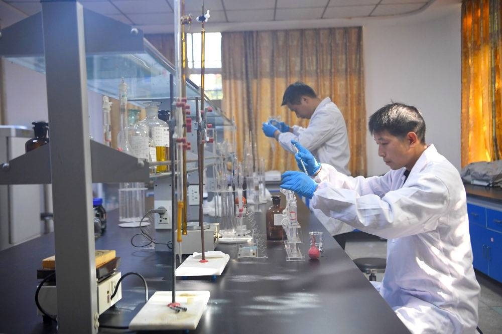 2024年11月28日,在南陽市生態(tài)環(huán)境局淅川分局環(huán)境監(jiān)測站,工作人員在進行水質監(jiān)測。