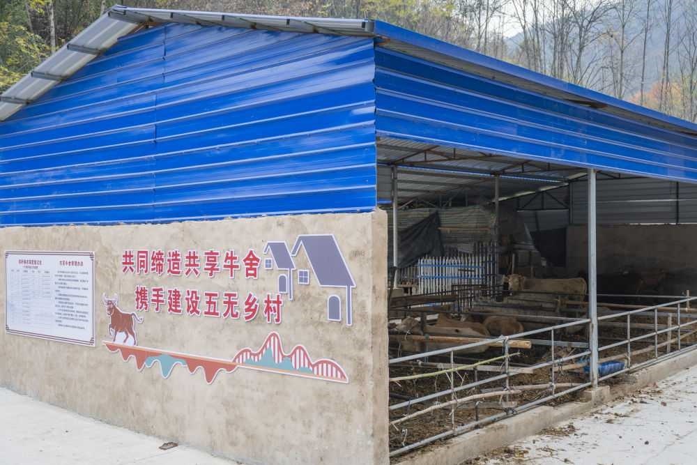 2024年12月8日,在丹江口市石鼓鎮(zhèn)柳林村拍攝的共享牛舍。共享牛舍可以將耕牛集中管理,避免村民將耕牛散養(yǎng)污染水體。