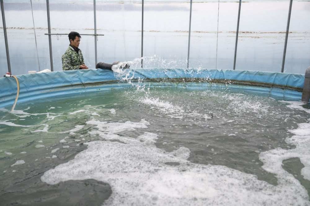 2024年12月8日,湖北農發(fā)(丹江口)漁業(yè)科技有限公司工作人員在給魚池放水。品質調控車間內的尾水經過四級沉淀池后排入生態(tài)塘凈化處理,后進行循環(huán)使用從而減少污染。