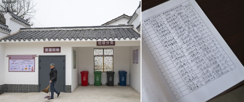 2024年12月8日,在丹江口市石鼓鎮(zhèn)柳林村拍攝的垃圾分類處和塑料資源回收點。村民可將新舊塑料制品帶到此處換成環(huán)保生活日用品。