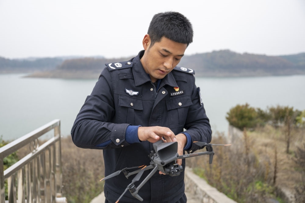 2024年12月8日,丹江口市庫區(qū)綜合執(zhí)法大隊六中隊執(zhí)法隊員在操作無人機。