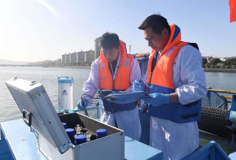 2024年11月28日,在淅川縣鸛河流域城區(qū)段,南陽市生態(tài)環(huán)境局淅川分局工作人員記錄采樣水質情況。