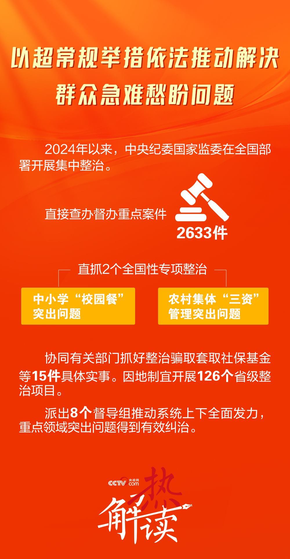 “指導各地選擇民生痛點難點因地制宜開展整治”,二十屆中央紀委四次全會公報指出了“堅決打好反腐敗斗爭攻堅戰(zhàn)、持久戰(zhàn)、總體戰(zhàn)”的清晰目標,同時提供了實現這一目標的方法論。