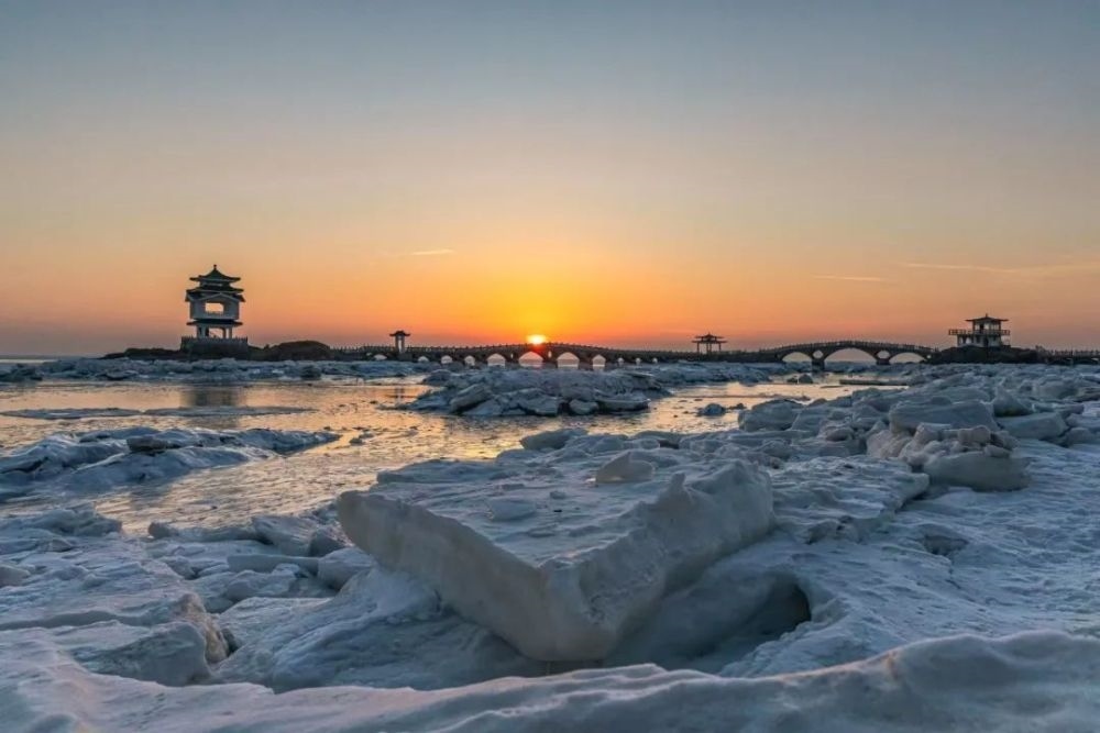 數(shù)九隆冬,位于葫蘆島興城市的三礁攬勝景區(qū)附近海水結冰。