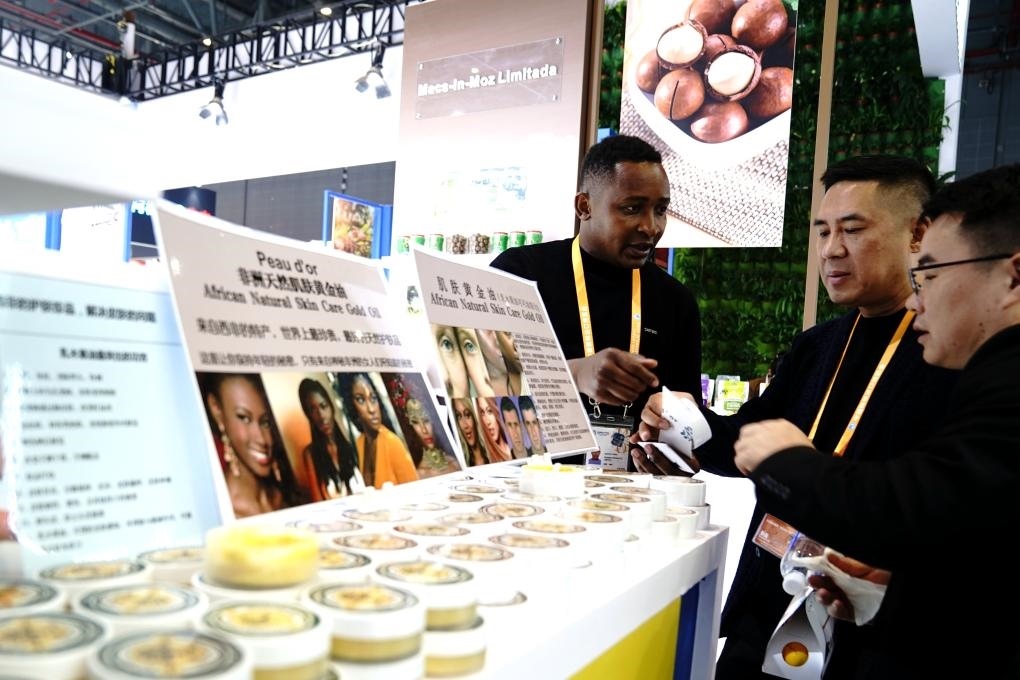 2024年11月7日,參展商在第七屆進(jìn)博會(huì)食品及農(nóng)產(chǎn)品展區(qū)的非洲產(chǎn)品專區(qū)介紹產(chǎn)品。新華社記者 張建松 攝