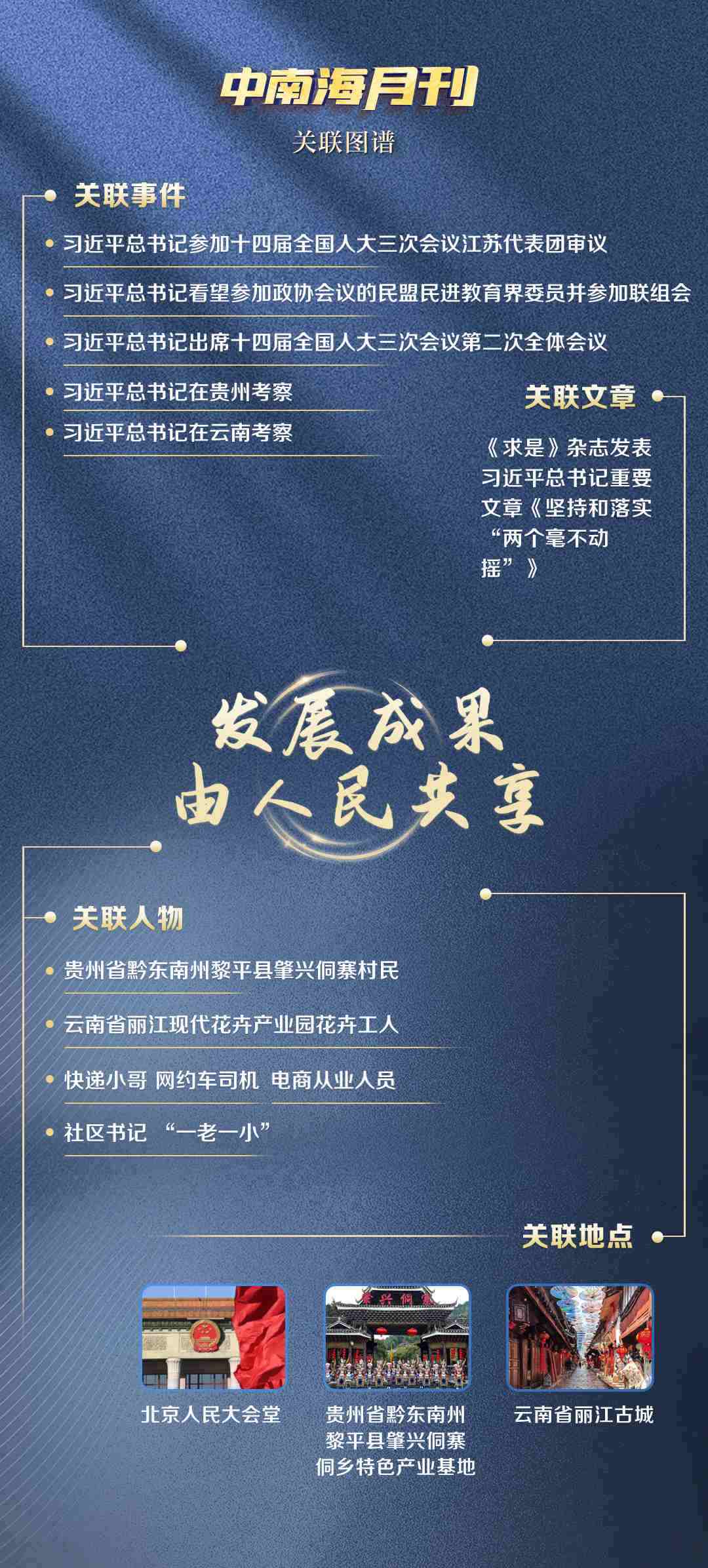 觀察央視網(wǎng)I學(xué)習(xí)數(shù)據(jù)庫(kù)生成的3月關(guān)聯(lián)圖譜,無論是對(duì)高質(zhì)量發(fā)展的謀篇布局,還是推動(dòng)優(yōu)秀傳統(tǒng)文化守正創(chuàng)新,“發(fā)展成果由人民共享”的理念始終貫穿其中,“致廣大而盡精微”的治理方法也清晰可見。
