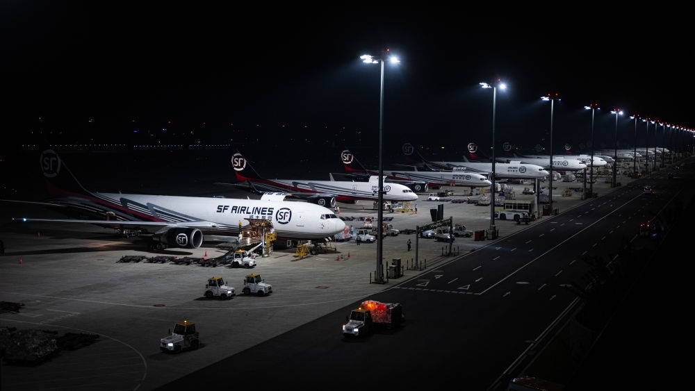 2024年5月25日凌晨,工人在湖北鄂州花湖國際機場停機坪裝卸貨物。鄂州花湖國際機場于2022年7月建成投運,是亞洲首個專業(yè)貨運樞紐機場。截至2025年1月26日,鄂州花湖國際機場已開通37條國際貨運航線和66條國內(nèi)貨運航線。