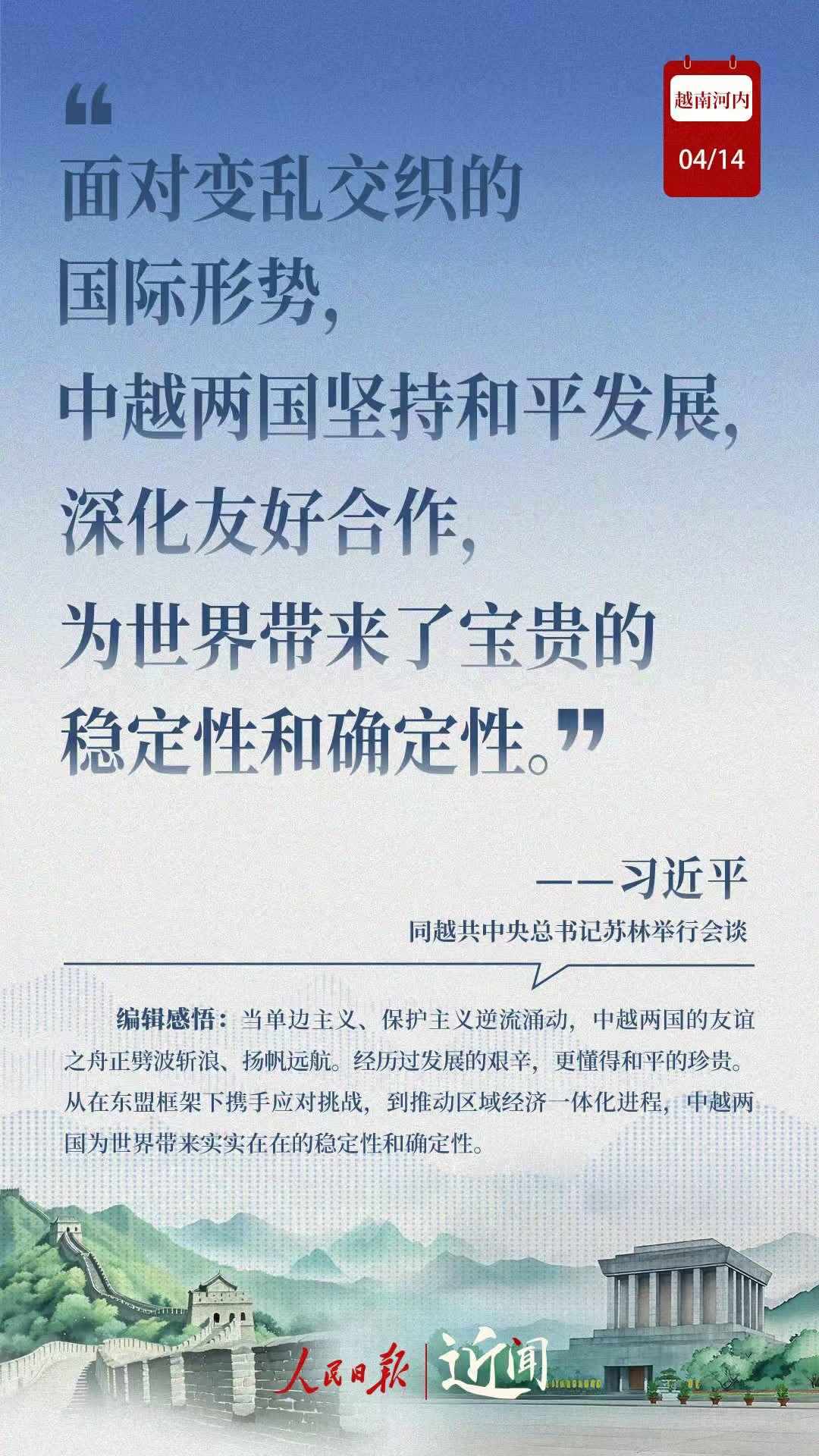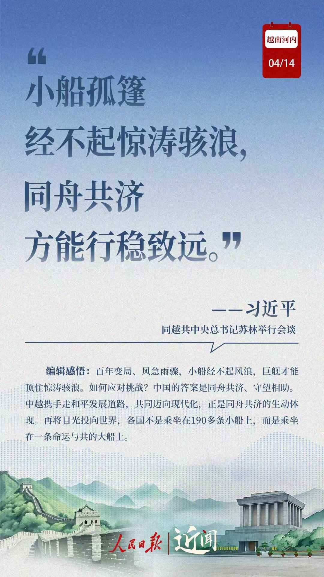 “小船孤篷經(jīng)不起驚濤駭浪,同舟共濟方能行穩(wěn)致遠”“中越關(guān)系根基在人民、血脈在人民、力量在人民”……透過這些話,一覽此次越南之行。