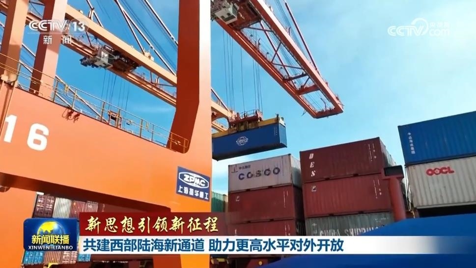 央視網(wǎng)消息(新聞聯(lián)播):建設(shè)西部陸海新通道,是以習(xí)近平同志為核心的黨中央作出的一項(xiàng)重大決策。習(xí)近平總書(shū)記指出,要大力推進(jìn)西部陸海新通道建設(shè),推動(dòng)沿線地區(qū)開(kāi)發(fā)開(kāi)放,深度融入共建“一帶一路”。牢記總書(shū)記囑托,今年以來(lái),沿線各地聚焦改革創(chuàng)新、數(shù)字賦能、產(chǎn)業(yè)協(xié)同三大重點(diǎn)任務(wù),高水平建設(shè)西部陸海新通道,助力加快形成“陸海內(nèi)外聯(lián)動(dòng)、東西雙向互濟(jì)”的對(duì)外開(kāi)放新格局。