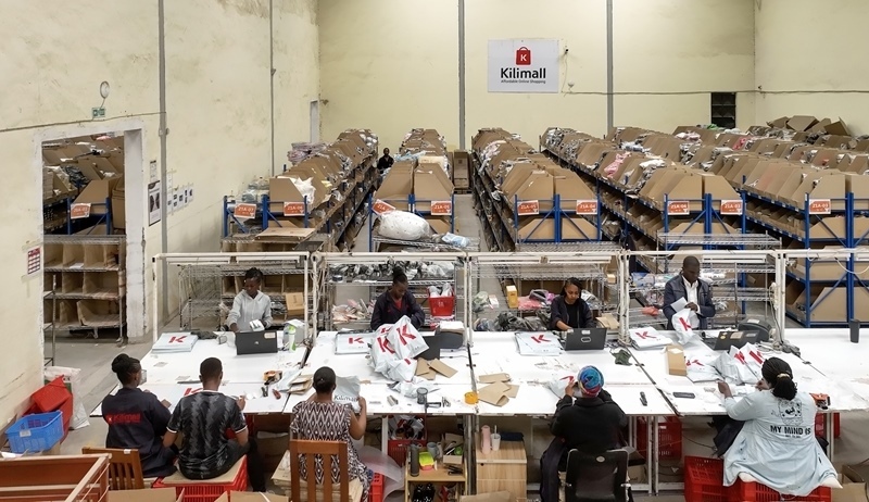 2023年7月28日,在肯尼亞姆洛隆戈,Kilimall員工在倉庫內(nèi)分揀貨物。新華社記者 李亞輝 攝
