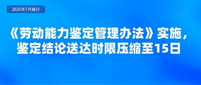 人力資源社會保障部、國家衛(wèi)生健康委聯(lián)合印發(fā)的《勞動能力鑒定管理辦法》,自2025年7月1日起施行。《辦法》明確,工傷職工和因病或非因工致殘申請領(lǐng)取病殘津貼人員申請勞動能力鑒定適用本辦法。勞動能力鑒定分為初次鑒定和再次鑒定,對初次鑒定不服可以申請?jiān)俅舞b定,再次鑒定為最終結(jié)論?!掇k法》強(qiáng)調(diào),要加強(qiáng)便民服務(wù),減少不必要材料,信息共享能夠獲取的申請材料不得要求申請人重復(fù)提交;壓縮鑒定時(shí)限,將結(jié)論送達(dá)時(shí)限從20日壓縮至15日;加強(qiáng)無障礙環(huán)境建設(shè),完善無障礙服務(wù)設(shè)施設(shè)備。