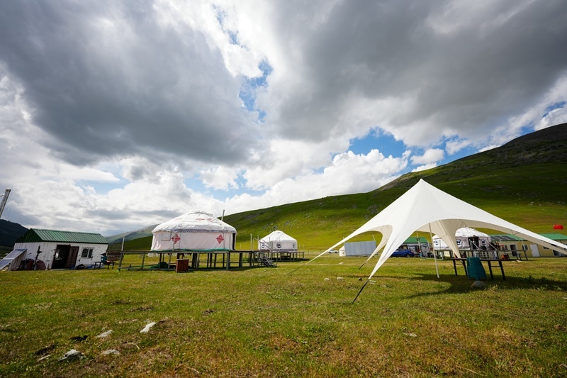 這是6月30日在阿禾公路旁拍攝的由當(dāng)?shù)卮迕窠?jīng)營(yíng)的餐飲氈房。