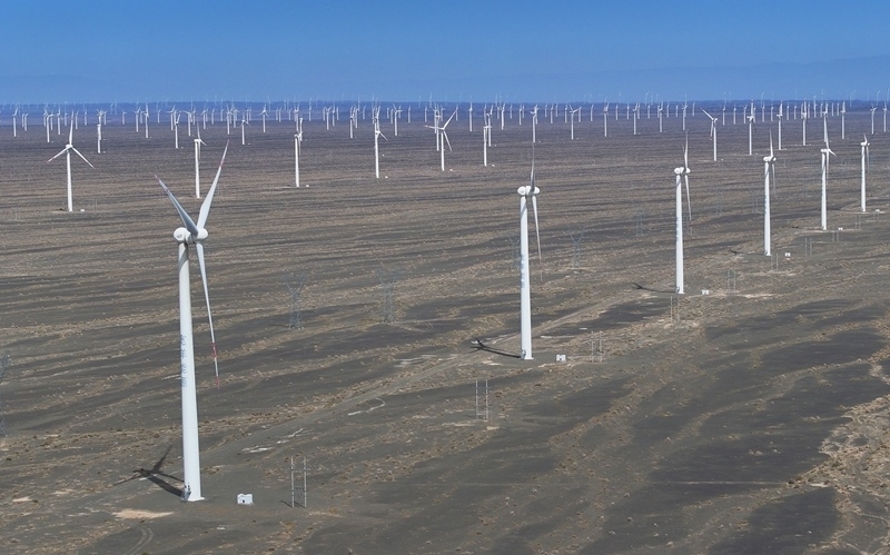 昔日的戈壁荒漠,如今由太陽(yáng)能光伏板匯聚成“藍(lán)色海洋”,由風(fēng)力發(fā)電機(jī)組成“白色森林”,正孕育著無(wú)限“風(fēng)光”。