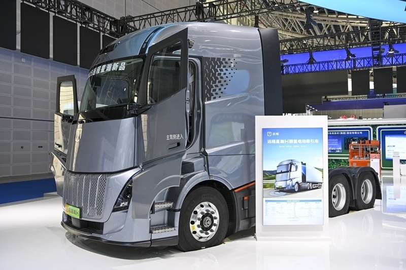 這是在2025年山西(太原)能源產(chǎn)業(yè)博覽會(huì)上展示的一款醇?xì)潆妱?dòng)牽引車(chē)(9月27日攝)。