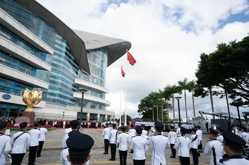 7月1日,香港特區(qū)政府在金紫荊廣場(chǎng)舉行升旗儀式,慶祝香港回歸祖國(guó)28周年。