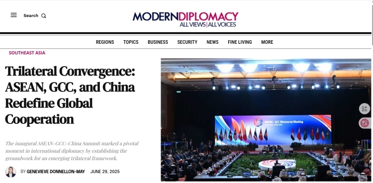 6月29日,歐洲《現(xiàn)代外交》網(wǎng)站刊發(fā)評論文章《三方協(xié)同:東盟、海合會與中國重新定義全球合作》。文章從不久前圓滿閉幕的首屆東盟—中國—海合會峰會出發(fā),指出東盟、海合會與中國之間的三方合作對推動世界多極化、促進(jìn)全球南方國家發(fā)展具有重要意義,中國作為負(fù)責(zé)任大國在全球治理中發(fā)揮了關(guān)鍵領(lǐng)導(dǎo)作用。