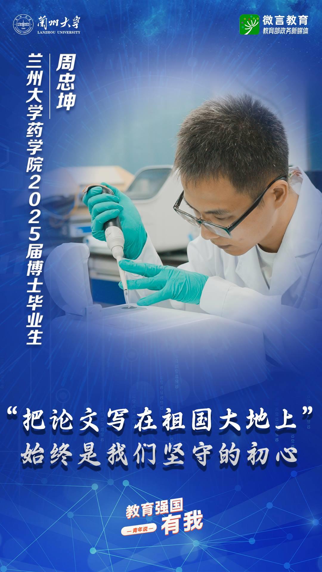 習(xí)近平總書記強(qiáng)調(diào),希望廣大青年堅(jiān)定理想信念,厚植家國情懷,練就過硬本領(lǐng),發(fā)揚(yáng)奮斗精神,到祖國和人民最需要的地方發(fā)光發(fā)熱,為中國式現(xiàn)代化建設(shè)貢獻(xiàn)青春力量。教育強(qiáng)國建設(shè),青年何為?教育部政務(wù)新媒體推出“教育強(qiáng)國,有我!”網(wǎng)絡(luò)主題宣傳活動之“青年說(報(bào)國篇)”系列,展現(xiàn)青年學(xué)子將個(gè)人理想融入國家發(fā)展的青春擔(dān)當(dāng)。今天,跟教育小微通過1個(gè)視頻和1組海報(bào),一起來看蘭州大學(xué)學(xué)子如何把論文寫在祖國大地上——