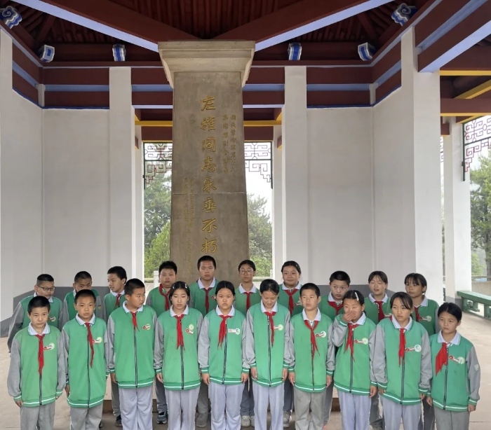 2025年5月23日,澤城九年一貫制學(xué)校五、六年級的學(xué)生舉行活動紀(jì)念左權(quán)將軍。(新華網(wǎng) 于楊 攝)