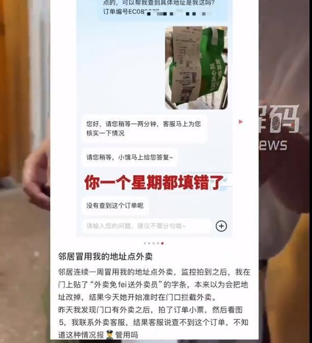 女鄰居冒用他人地址點(diǎn)外賣的行為