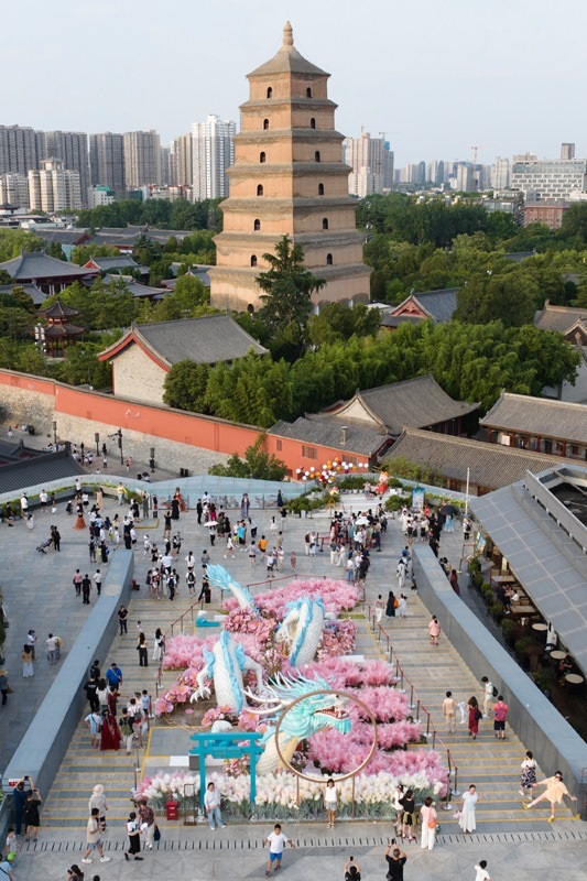 近年來(lái),西安市通過(guò)培育創(chuàng)建國(guó)際消費(fèi)中心城市,推動(dòng)商街商圈改造開(kāi)發(fā)與歷史文化遺址保護(hù)工作協(xié)調(diào)進(jìn)行,持續(xù)提高城市宜業(yè)宜居、宜樂(lè)宜游水平,高質(zhì)量開(kāi)展城市更新,使這座古城煥發(fā)出新的生機(jī)與活力。